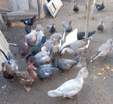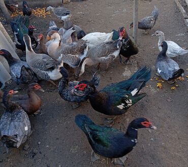 Çöl ördəkləri satılır. Yaşılbaş sona. - Şəkildə iri qrupa yaxın boz-naxışlı qaz balaları görünür (yerli cins). - Açıq havalı, torla örtülü qələmdə saxlanılır. - Taxıl qarışığı ilə yemlənir, sərbə...