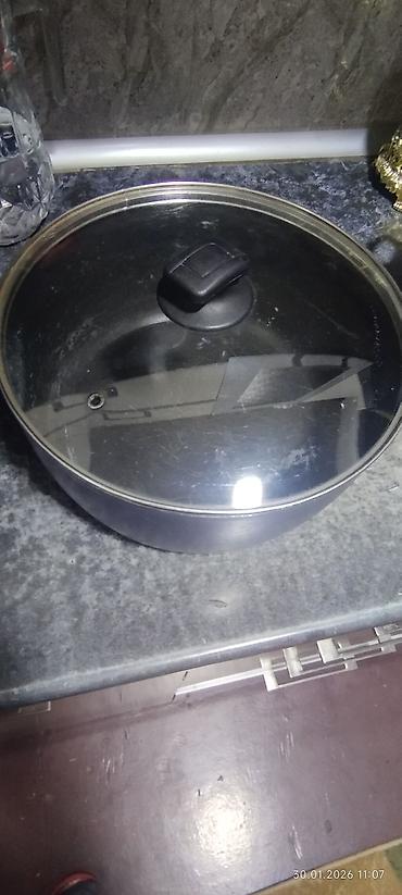 - 1 ədəd orta ölçülü tava/qazan – dairəvi, metal korpuslu, şüşə qapaqlı.