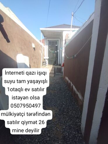 1 otaqlı həyət evi Plan: - 1 geniş otaq: pəncərə ilə işıqlı otaq. -