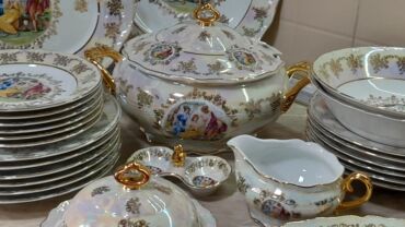 Çexiyanin 12nəfərlik boşqab dəsti.17və 19sm.boşqablar.6əfəd böyük dərin boşqablar.4ədəd dördkünc aş buludları və 4ədəd aş qarası üçün qablar.Təzədi ,qutudan acılmayıb.Dördkünc böyük buludların biri...
