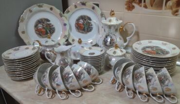 Klassik üslubda porselen çay və yemək dəsti - Zərif qızılı naxışlar və romantik tematik rəsm kompozisiyaları ilə bəzədilmiş porselen - Tam çay servisi və süfrə elementləri Dəstinə daxildir: - Çay...