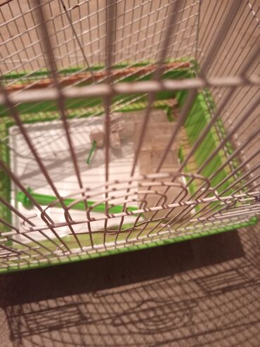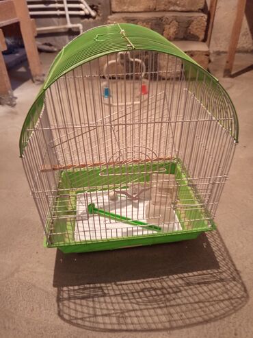 Şəkillərdə qara metal çərçivəli heyvan qəfəsi təsvir edilmişdir. Qəfəs