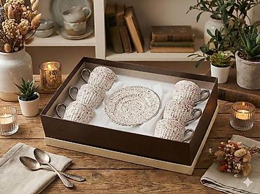 6 nəfərlik keramik fincan dəsti – hədiyyə qutusunda