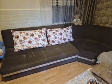Künc divan – qəhvəyi rəngdə, yumşaq məxməri/parça üzlük. az istifade olunub