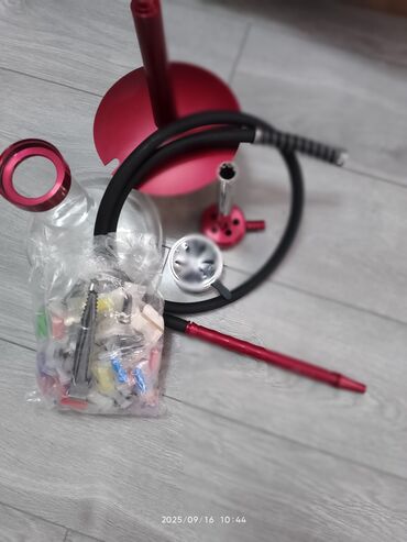 QırmızıNargilə dəsti – qırmızı anodlaşdırılmış alüminium gövdə və sini, şüşə kolba və silikon şlanqla