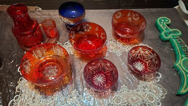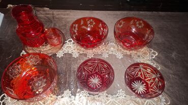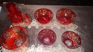 Qırmızı kəsimli şüşə dəst - Material: qalın, yarımşəffaf qırmızı