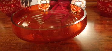 Qırmızı şüşə meyvə/servis qabı - Material: qalın şüşə - Rəng: dərin