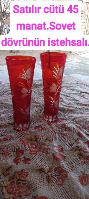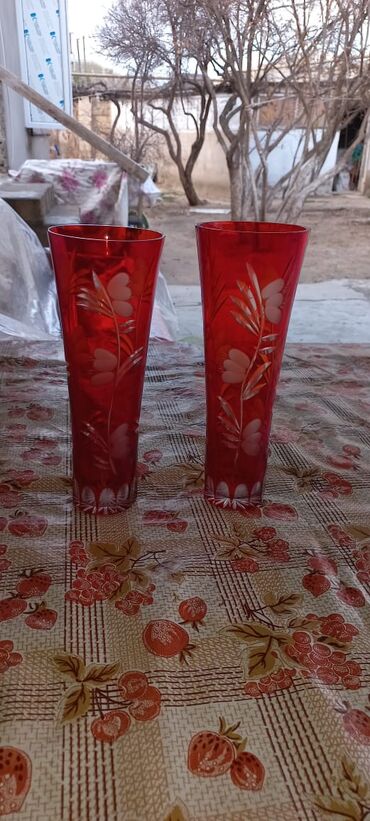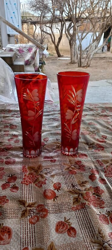 Məhsul: Sovet dövrü istehsalı qırmızı şüşə vaza dəsti (2 ədəd)