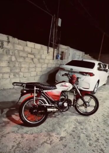 Moped/motosiklet – qırmızı-ağ rəng sxemi ilə klassik dizayn.
