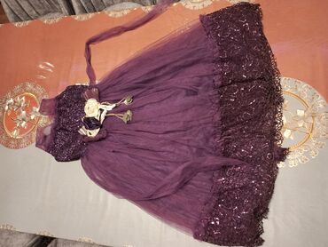 85AZN ❌️ 70 AZN. Məhsul: Yenidir. Sadəcə 1 dəfə ad günündə geynilib.“Üstündə həm abadok, həm də bantiki var.” Qız uşağı üçün zərif ziyafət/libas dəsti - Rəng: lili rəng - Material: Yüngül tull (...