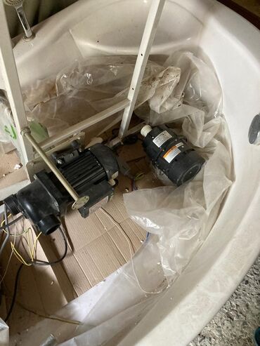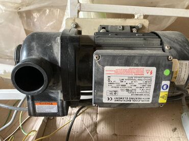 - Su nasosu üzərində qızdırıcı elementli Whirlpool Bath Pump (etiketdə: 220–240 V, 50 Hz, 9.8 A, 1.9 kW; IPX5; maksimum su temperaturu 60°C; model PM10-1H-300)