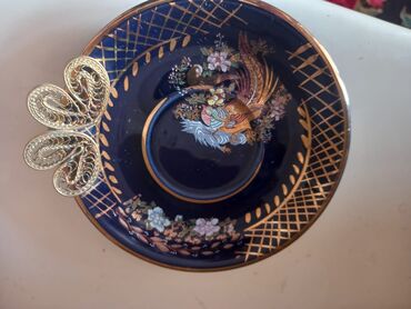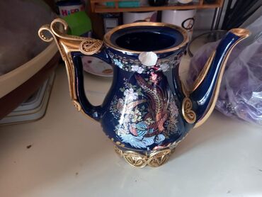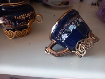 Kobalt-mavi və qızılı rənglərin kombinasiyasında, əl boyaması bəzəklərlə işlənmiş çay dəsti. Dəstdə: - Çaydan (qapaqlı) - Südqrafin - 6 ədəd fincan - 6 ədəd nəlbəki Fincan və nəlbəki səthlərində ...