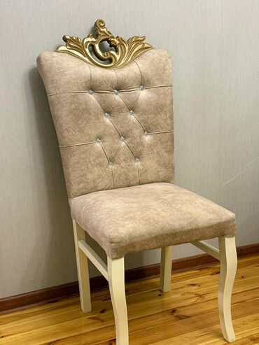 Ölçülər təxmini: standart yemək stulu hündürlüyü; arxa hissə yüksək və dəstəkli.