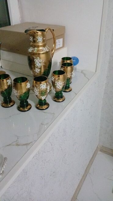 Графин с бокалами. Каждый комплект по 110 манат. Qrafin bokallarla. Hər bir komplekt 110 manatdır.