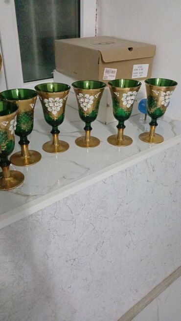 Dekorativ bəzəkli büllur stəkanlar satılır. Biri 50 manat.