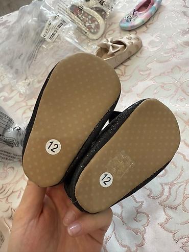 Kiçik qızlar üçün nəzərdə tutulmuş qara rəngli babetlər. Bu ayaqqabılar parıltılı dizaynı və hər bir ayaqqabının ön hissəsində bəzək kimi bağlana bilən qara bantla xüsusilə cəlbedicidir. Ayaqqabının alt hissəsində və içərisində 12 ölçü işarəsi var. Rahatlığı təmin etmək üçün yumşaq materialdan hazırlanıb. Gündəlik istifadə və xüsusi tədbirlər üçün uyğundur.