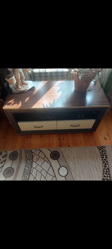 TV stendi – yuxarı hissəsində iki ədəd açılan şkaf, aşağı hissəsində isə geniş siyirtməsi (çəkməcəsi) var.