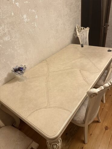 - Uzunsov yemək masası, krem rəng, səthdə dekor xətləri