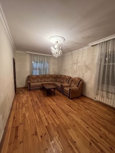 Zövqlü tərtibatlı qonaq otağı dəsti - Otaq ölçüsü: uzun, işıqlı planlama; hündür tavan, dekorativ tavan rozetkası və kristal çilçıraq. - Döşəmə: laklı təbii taxta taxtalar. - Divarlar: zərif çiçək...