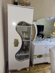 Klassik üslubda qonaq otağı mebel dəsti - Material: ağ rəngli MDF/taxta konstruksiya, qızılı rəngli barokko naxışlı aplikasiyalar və oyma dekor, güzgülü zolaqlar, şüşə vitrin qapıları və polkaları...