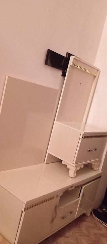 - TV stendi: alçaq, uzun modullar, üzərində əlavə kiçik tumba.