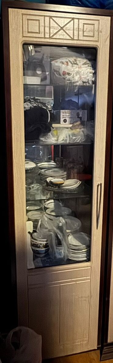Başlıq: 350 manata satilir qorka, TV stend, kamod və jurnalni. Qiymetde Təsvir: - Qorka/vitrin: Şüşə qapılı, üç səviyyəli rəf sistemi, LED işıqlı görünüş (şəkillərdə parlaq saxlanma zonası), qab-q...