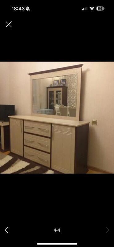 Qonaq otağı üçün mebel dəsti təcili satılır. Dəstə TV stend, güzgülü komod və şkaf daxildir. Medel Türkiyənin İstikbal fadrikinindir, ideal vəziyətdədir