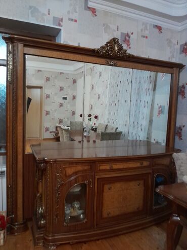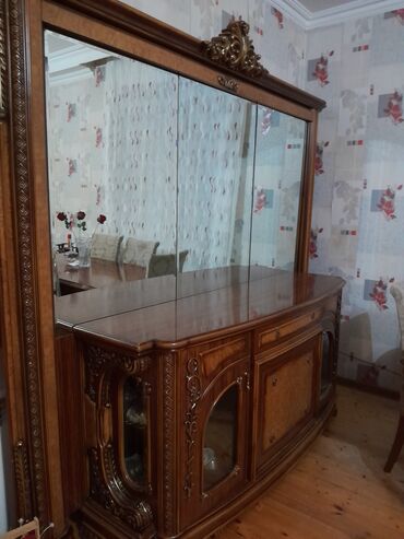 Klassik üslubda dəst – böyük güzgülü konsol və vitrin şkafı