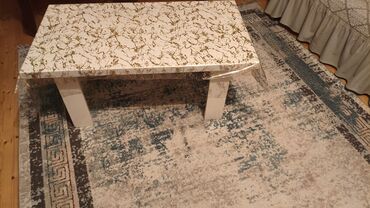 - Jurnal masası: ağ rəngli, mərmər naxışlı parlaq üstlük, düz xətli ayaqlar; gündəlik istifadə və çay-süfrə üçün uyğundur.