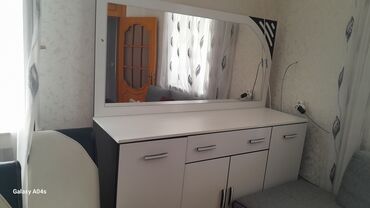 Qonaq otağı üçün mebel dəsti satılır: vitrin şkafı və güzgülü komod.