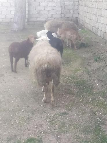 6 dişi 1 erkek satılır Qoyun sürüsü – yerli ətlik/yunluq istiqamət - Şəkillərdə görünən qarışıq rəngli (qəhvəyi, qara, açıq) ana və gənc qoyunlar - Qapalı həyətyanı tövlədə saxlanılır, quru samanl...
