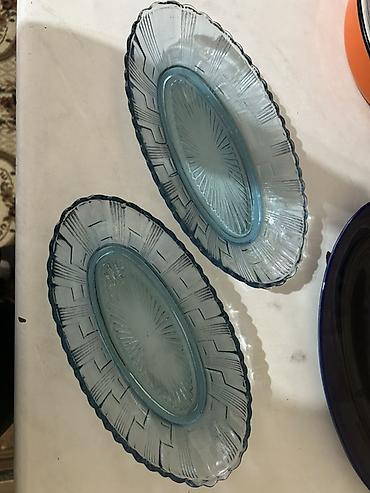 - 2 ədəd mavi rəngli, oval formalı servis boşqabı