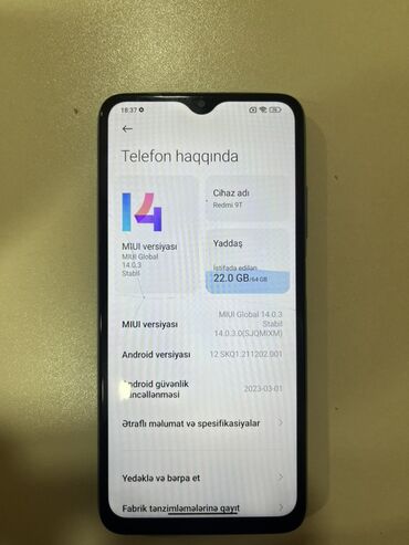 - Əməliyyat sistemi: Android 12, MIUI Global 14.0.3 stabil