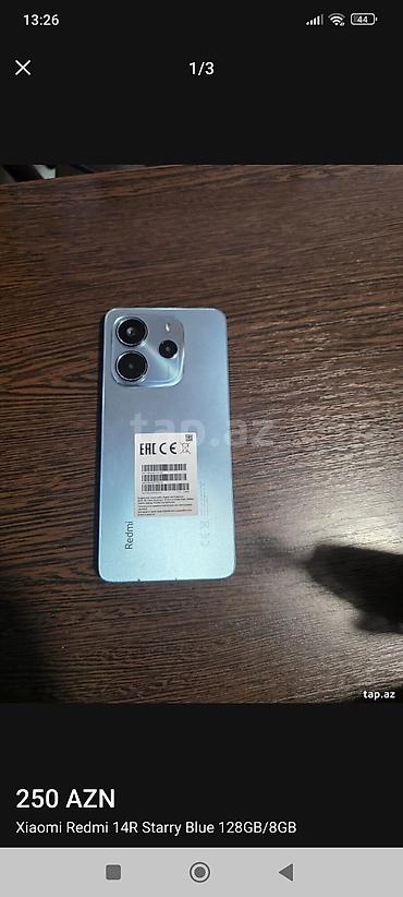 Redmi note 14 Yepyenidir qutusundan 1ay çıxıb işlənib. Təcilu satılır hər şeyi üstündədir 256gb yaddaş 8+4 gm ram. Sürətlidir - Rəng: göyümtül-ağ (incə parıltılı arxa panel) - Arxa kamera bloku: 2...