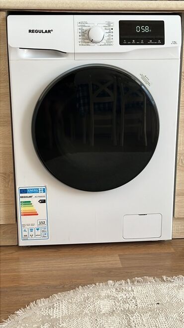 2 ayin paltaryuyanidi xaricə köçürük diə satiriq REGULAR markalı ön yükləməli paltaryuyan maşın - Rəqəmsal ekran: vaxt göstəricisi (0:58 nümunəsi), başlanğıcı gecikdirmə, temperatur və sıxma tənz...