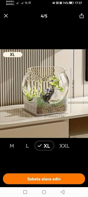 Temudan almıwam.ölçüler wekilde görsenir.balıq saxlamadigıma satıram.wekildeki kimi plastikden olduğuna rengi deyıwmiw.biraz dumanlı kimi gösterir.ünvan binededir.18man alnıwam.İçersinde xırda dawlarııyla yosunuda hediyye verirem