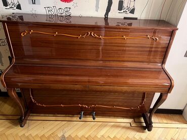 Estetik görünüşü və dekorativ detalları ilə interyerə uyğunlaşan, səs rezonansını yaxşı verən klassik Alman məktəbinin şaquli pianinosu.