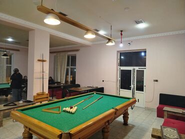 - Oyun zalı işıqları: masa üzərinə yönəlik 3 plafonlu asma işıq paneli (fotoda görünür).