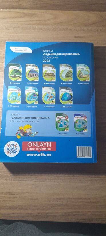 - Arxa üz: 2023 “Qiymətləndirmə üçün tapşırıqlar” seriyası üzrə digər fənlər və siniflər haqqında məlumat, onlayn sınaqlar üçün www.otk.az QR keçidi