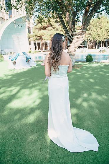 Ağ rəngli zərif ziyafət/libas - Model: balıq kəsimli, dizdən aşağı
