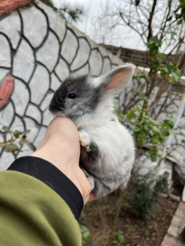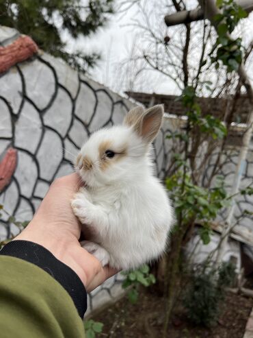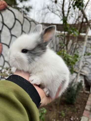 Miniatür dekorativ dovşan balaları - Cins: kiçik dekorativ/mini lop tipli (asqıqulaq görünüşlü) - Rənglər: biri ağ-krem-qəhvəyi ləkəli, digəri boz- erkək və dişi 1 aylıq bala- qəfəsi ayaq yolusu v...
