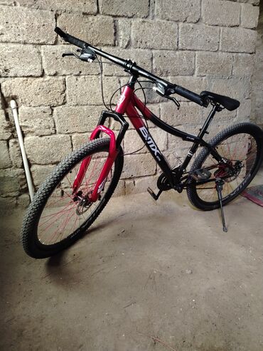MTB tipli velosiped Xüsusiyyətlər: - 27.5" təkərlər, qalın dişli off-road şinlər - Alüminium/poçta çərçivə dizaynı, qırmızı-qara rəng sxemi - Amortizatorlu ön çəngəl - Ön və arxa disk əyləclər - 3...