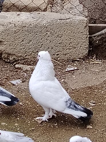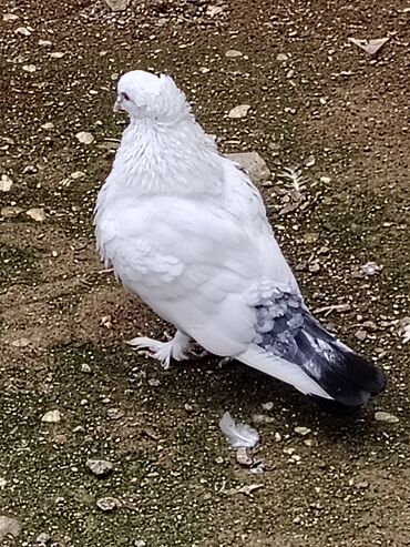 Ağ-qəhvəyi rəngli göyərçin - Bədən rəngi ağ, kürək və qanad üstündə qəhvəyi ləkələr - Uzun quyruqlu, qırmızı pəncəli - Həyətdə saxlanılıb, digər göyərçinlərlə yanaşı görünür - Ev quşu kimi baxıma u...