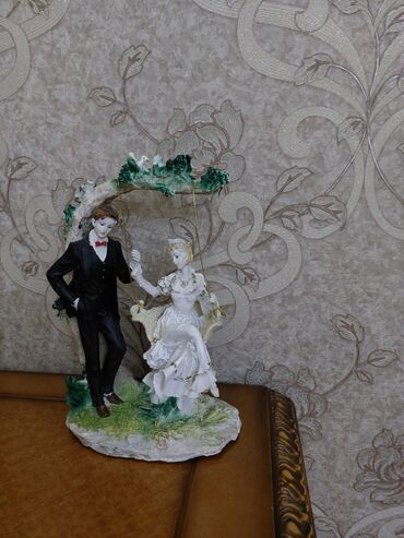 Porselen heykəl – cütlük kompozisiyası - Material: yüksək parlaqlıqlı porselen - Mövzu: zərif paltarda xanım və frak geyimli bəylə romantik rəqs/poza - Detallar: xanımın əlində çəhrayı qızılgüllər...