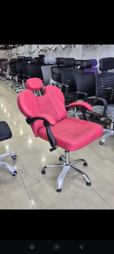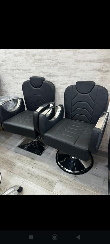 - Bərbər kresloları: Qara rəngli, yumşaq süni dəri üzlüklü, başaltılı və relyef tikişli bel dayağı ilə. Xrom detallar, geniş oturacaq və qol dayaqları. Döner baza və hidravlik tənzimləmə mexanizmi (şəkillərdə görünən baza). Stabil metal altlıq, təmizlənməsi asan material.