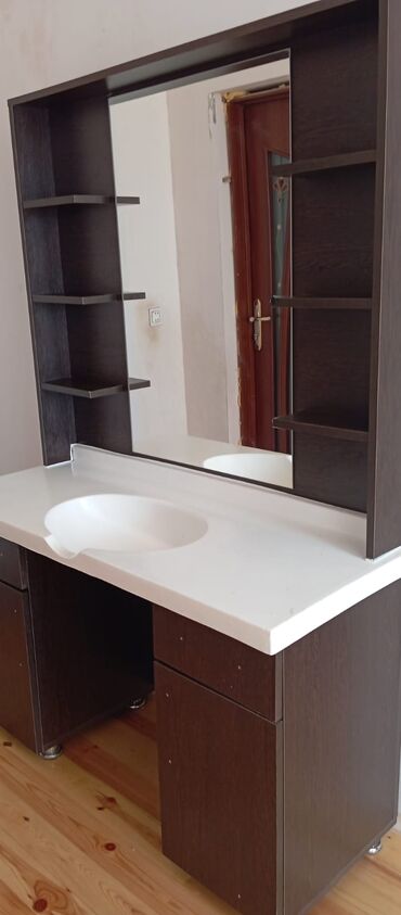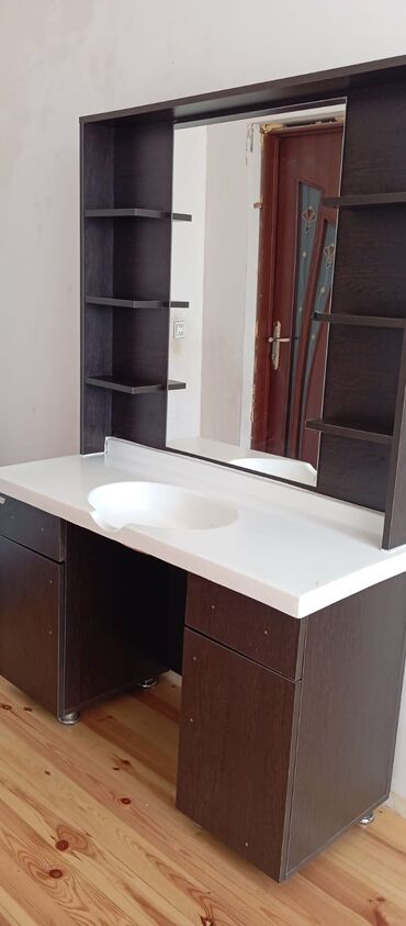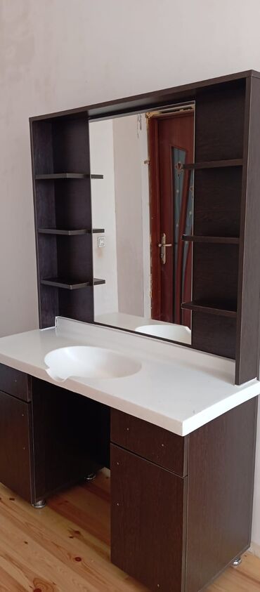- İki tərəfdə çoxsaylı açıq rəflər: kosmetika, fırçalar, saç məhsulları və aksesuarların səliqəli yerləşdirilməsi üçün