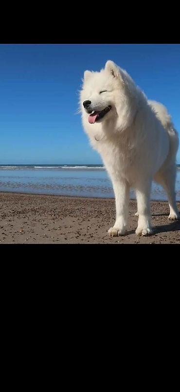 - Cins: Samoyed (ağ, uzun və qalın ikiqat tüklü kürk, “gülümsəyən” ifadə)