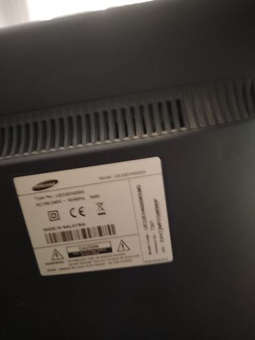 Samsung LED TV – Model: UE40EH5000W - Ekran diaqonalı: 40" - Seriya/Tip nömrəsi: UE40EH5000 - Enerji girişi: AC 100–240V, 50/60Hz, 87W - İstehsal: Malayziya - Sertifikatlar: CE işarələnməsi - Arxa...