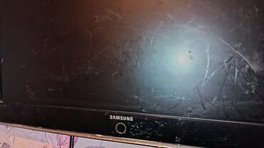Samsung LCD televizor - Ekran diaqonalı təxminən 32" (80 sm civarı) - Geniş çərçivəli klassik dizayn, oval dayaq ayağı - Ön paneldə “Samsung” loqosu - Arxa hissədə ventilyasiya panjurları və divar...