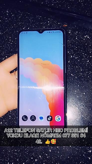 Qeyd: Şəkildə “A12 telefon satılır, heç problemi yoxdu” məlumatı görünür. Telefon nömrəsi paylaşılmayıb. Anti udarındadı yüngül cızıqlar ekran superdi.